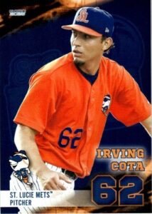 Irving Cota acumuló un récord de 5 victorias y 3 derrotas, con una efectividad de 4.25 en su carrera de 19 juegos como lanzador con los Tigres de Quintana Roo, los Mets, los Mets de St. Lucie y los Ponies de Binghamton. Comenzó a jugar en la temporada 2022 y su última aparición en el campo fue en la campaña 2025.