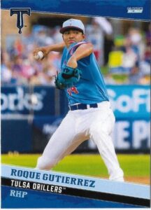 Roque Gutiérrez acumuló un récord de 16 victorias y 9 derrotas, con una efectividad de 5.09, en sus 97 juegos como lanzador con los Dodgers, Rancho Cucamonga Quakes, Tulsa Drillers y Great Lakes Loons. Comenzó a jugar durante la temporada 2021.