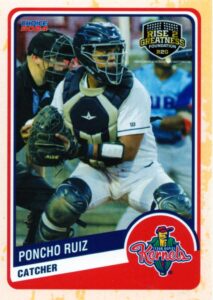 “Poncho” Ruiz, de 21 años y nativo de Tijuana, Baja California, acumula tres años de experiencia en San Diego State. Em 128 juegos, promedia .290 con 15 HR y 94 CI, con .838 de OPS en 128 juegos. Su posición es receptor y primera base.