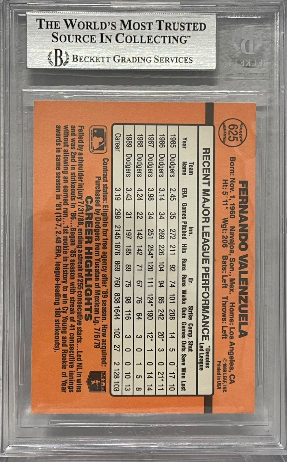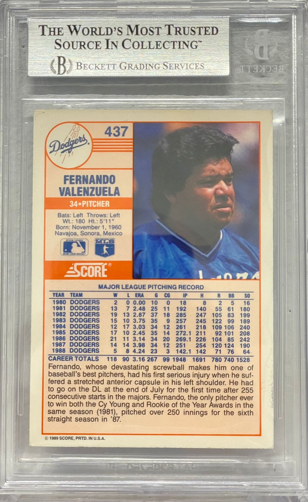 Fernando Valenzuela 1989 Score Firmada y Certificada