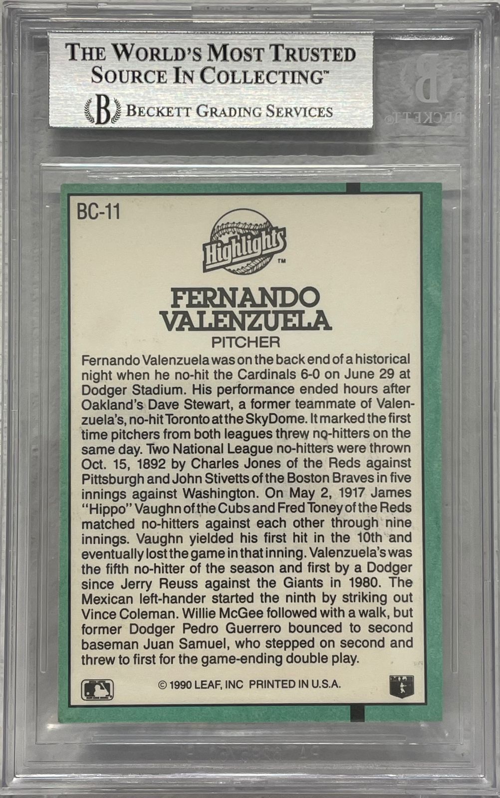 Fernando Valenzuela 1990 Donruss firmada y certificada